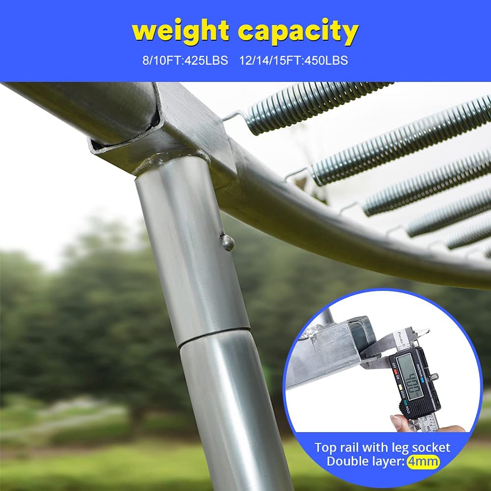 ORCC trampolines use the latest hot-dip galvanizing technology to make the frame anti-rust, more stable and durable. And our unique two steel joints design provide a solid base for the whole trampoline. Max weight capacity up to 450LBS. at the same time, comes with wind stakes, make the trampoline stands stably even in storm.